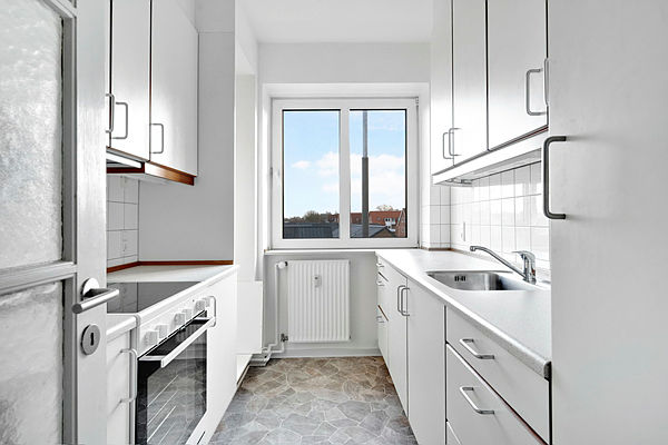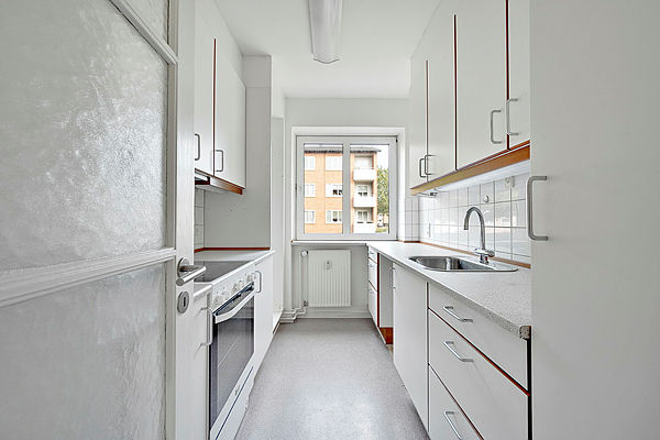 Velindrettede og lyse lejligheder, beliggende i lavt blokbyggeri fra 1956.
