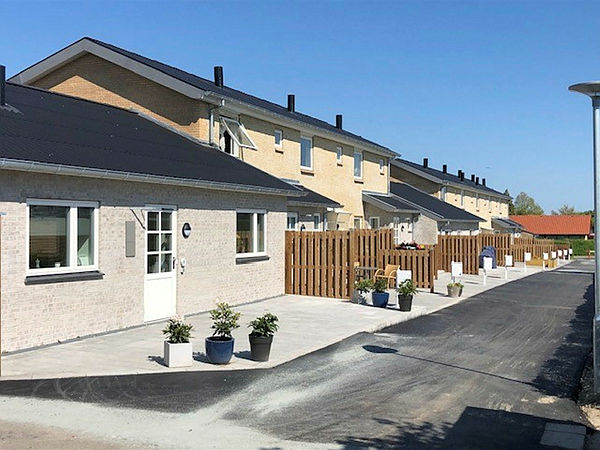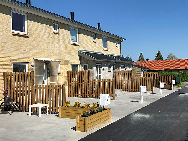 Området emmer af god stemning, der spreder sig mellem de fine ældre 2-plans rækkehuse, der har haver samt de nye 1-plans rækkehuse med terrasser.