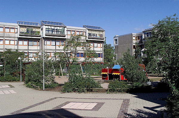 Højhuse har inddækkede altaner.