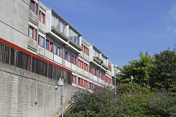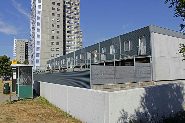 Højhuse har inddækkede altaner.