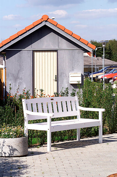 Alle boligerne har små haver med terrasse, eget skur og parkeringsplads.