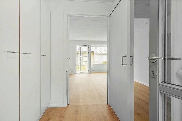 Alle boliger har egen indgang, eget udvendigt skur samt mindre terrasse/have.