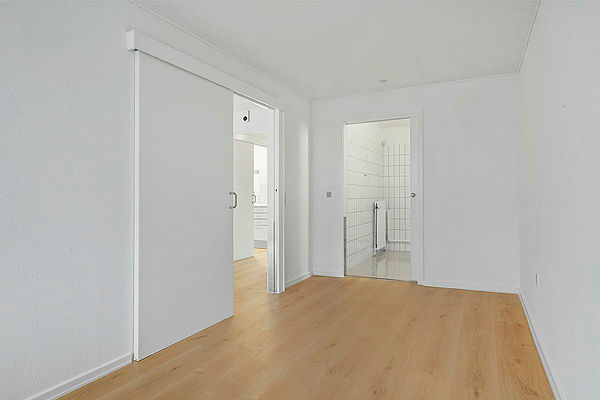 Velbeliggende og godt indrettede 2. værelses rækkehuse på 55.m2 i ét plan. Fra opholdsrummet er der udgang til egen flisebelagt terrasse. Ved hoveddøren findes et skur til opbevaring som hører med til lejemålet.