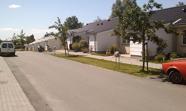 indkøbsmuligheder, skoler, svømmehal, idrætsanlæg og legeplads.