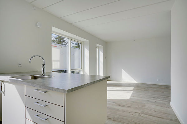 Såfremt der i lejemålet er forberedt til opvaskemaskine, forefindes der som udgangspunkt ikke et skab, da der vil være hulrum med plads til egen opvaskemaskine.